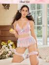4pcs Flounce Bow Lace Tulle Cake Skirt Lingerie Set: Sheer Mesh Panty + G-String + Mini Skirt + Garter, Romantic Sweet Sexy Intimate Apparel For Women, Suitable For Vacation, Party Holidayseason