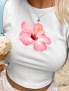 Flirla Women's Summer Y2K Pink Hibiscus Flowers Cropped T-Shirt Graphic Tees Women Tops