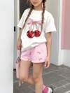2pcs/Set Tween Girls Casual Navy Blue, Mini Bow Decor, Contrast Cream Striped Short Sleeve Round Neck T-Shirt And Shorts Set, Suitable For Summer, Autumn Outfits , Easy Comfort, Autumn Layers For Kids, Stylish Girls, Casual Wear, Kids Graphic Clothes, Back To School, Fall Clothes, Homecoming