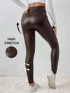 SHEIN Frenchy Solid Patent Bodycon Black PU Leggings Winter Casual