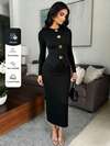 Vavine Metal Front Detail Set-Perfect Date Outfit, Pantsuit, Business Commute Old Money Style. Women's Stylish Long-Sleeve Top Plus Skirt Set For Summer Vacation Or Dates. Elegant Business-Casual, Black Suit With Metallic Button Detailed High-Stretch Fitted Vest And Skirt, Fall Officewear; Chic Daily Option For Dates, Christmas, Or Festive Occasions.