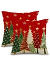 1/2/4pcs Soft Christmas Tree Decorative Throw Pillow Covers - Red & Green Farmhouse Holiday Decor With Golden Stars & Pine Tree Patterns, Zipper Closure, Machine Washable Polyester Cushion Covers For Sofa, Bedroom, Living Room - Contemporary Modern Xmas Decorations (No Inserts)