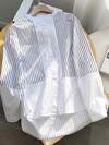 INAWLY Women's Casual Striped Color Block Roll-Up Sleeve Shirt For Vacation