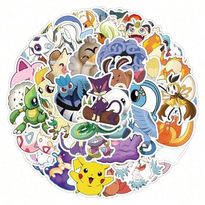 pokemon 100/60pcs New Pokémon Graffiti Stickers, Waterproof Stickers, Can Be Used To Decorate Notebooks, Suitcases, Pikachu, Pokémon Phone Cases, Manuals, Random Styles - Multicolor - View 1