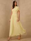 Enchnt Spring/Summer Romantic Women's Yellow Asymmetric Neck Sleeveless Ruched Waist Mesh Maxi Dress,Sweet&Elegant For Party&Prom&Vacation&Date&Holiday&Going Out&Valentine's Day,Spring Outfit Women