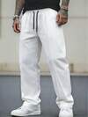 TOKVUE Quần nỉ nam màu trơn có túi rút, quần ống rộng màu đen rộng thùng thình