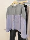 INAWLY Plus Size Casual Striped Patchwork Shirt, Autumn