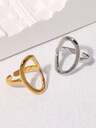 1pc Minimalist Fashion Stainless Steel Geometric Ellipse Open Ring, Stylish Design Suitable For Women Daily And Party Wear