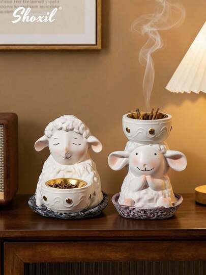 shoxil 1pc Cartoon Sheep Incense Burner, Creative Design, Cartoon Shape, Emits Fragrance, Can Be Used As Decor, Made Of Resin, Suitable For Aromatherapy, Home, Office Desk, Restaurant, Decoration, Gifts, Eid Al-Adha, Ramadan And Other Occasions - Censer - View 1