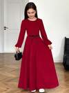 SHEIN Serisse Kids Đầm ngắn không tay xếp nếp kiểu Pháp thanh lịch, trang trí hoa 3D, xếp ly bất đối xứng, cổ tròn, ôm sát, váy công chúa, tiệc năm mới, đi chơi mùa xuân, trang phục hàng ngày, váy màu đỏ tía cho bé gái tuổi mới lớn, phù hợp cho mẹ và con gái