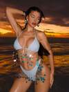 Elamini 1pc Y2K Style Sleeveless Top With Asymmetric Hem, Sequin Floral Print, Crisscross Straps, Casual For Women, Navy Blue, Spring/Summer