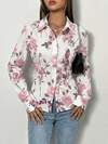 Casual Vacation Embroidered Floral Print Shirt With Ribbed Embroidered Applique White Spring