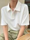 SHEIN Clasi Women's Bubble Short Sleeve Shirt With Stand Collar,Short Sleeve Tops