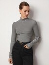 DAZY Casual Business Square Collar Solid Color Blouse For Women Long Sleeve Top