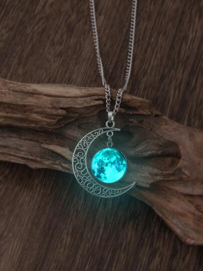 suteyi Moon Pendant Necklace - Mint Blue - View 1