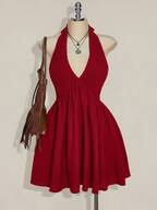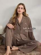 Women Solid Color Front Button V-Neck Double Pocket Long Sleeve Knit Cardigan