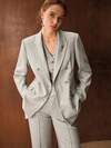 MOTF PREMIUM WOMEN'S AUTUMN/WINTER WOOL BLEND HERRINGBONE TWEED SHINY SEQUIN DOUBLE-BREASTED BLAZER