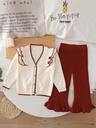 2pcs Girls Autumn/Winter Outfit, Cute Rabbit Knitted Cardigan And Skirt Set, Children Clothing For Outdoor Wear